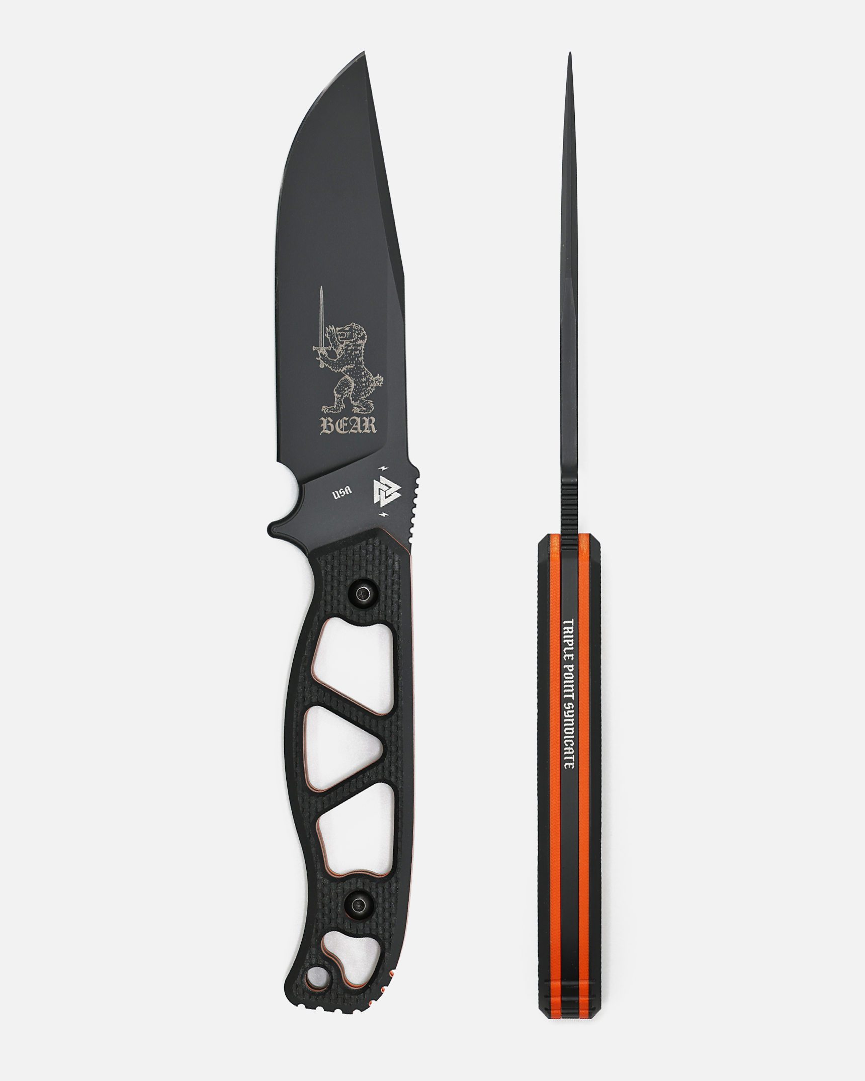 AT TRIPLE POINT SYNDICATE WE SPECIALIZE IN PRODUCING HIGH-QUALITY BLADES AND GEAR FOR MILITARY, FIRE AND LAW ENFORCEMENT TEAMS ACROSS THE GLOBE. OWNED AND OPERATED BY FORMER MILITARY PERSONNEL ROOTED IN THE SPECIAL OPERATIONS COMMUNITY, WE UNDERSTAND THE RIGOROUS TESTING AND STANDARDS NEEDED FOR A FUNCTIONAL AND RELIABLE TOOL THAT WILL WITHSTAND ANY ENVIRONMENT.