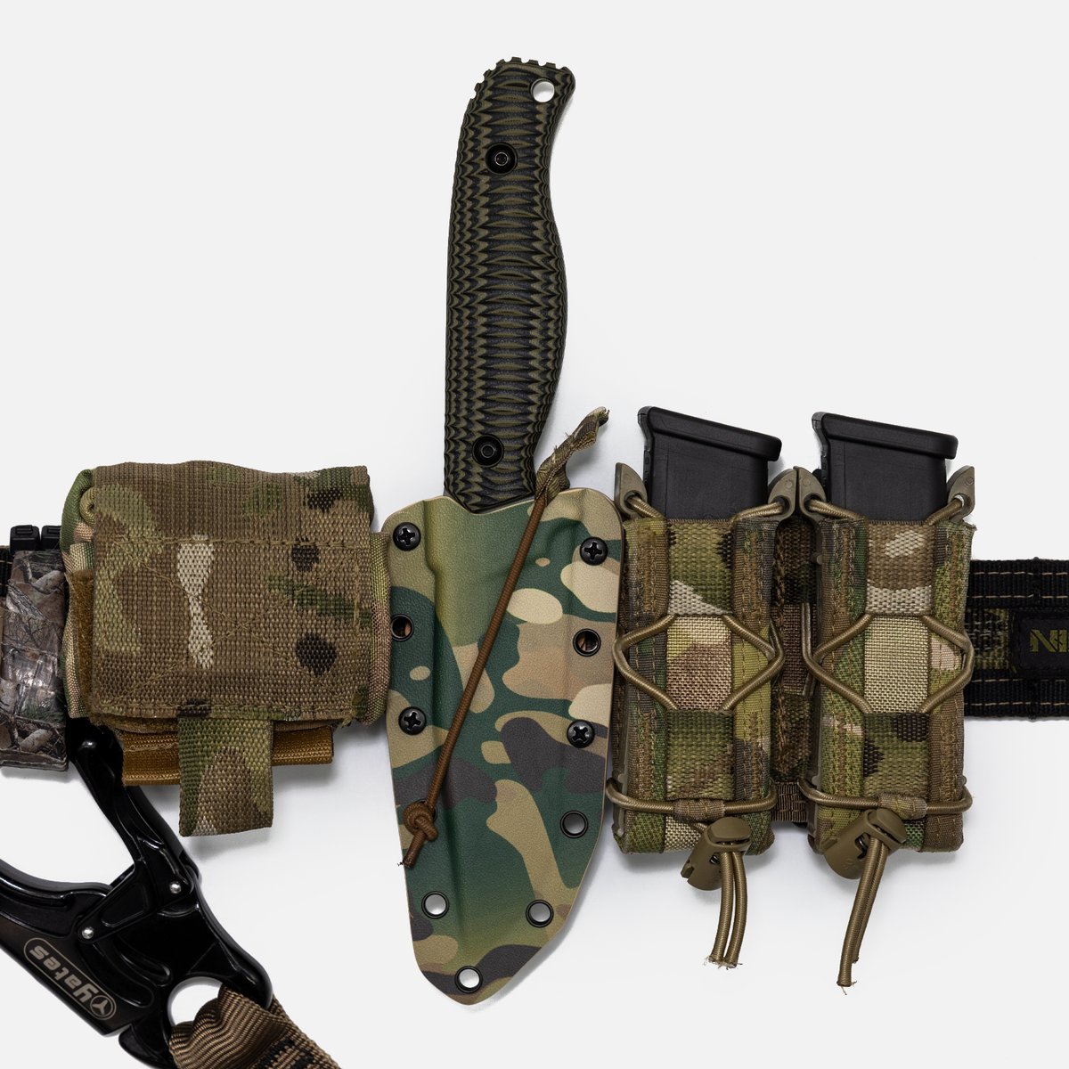 The MAP comes equipped with two attachment bars, perfectly sized and spaced for MOLLE-style gun belts or plate carriers. Simply thread the attachment bars through the belt’s PALS webbing for a rock-solid fit, ideal for narrow, minimalist belts favored by SOCOM and other elite communities, including belts from GBRS Group, Crye Precision, Ferro Concepts, Blue Force Gear, Eagle Industries, AXL, T3, Ronin, and Tyr Tactical. Alternatively, the MAP can be bolted directly to any standard belt up to 2” wide. Once installed correctly, the MAP ensures zero movement, slipping, or sliding of your sheath. For added versatility, the MAP features 12 mounting points compatible with popular quick-release systems like the Tek-Lok™ and polymer MOLLE hardware, such as the MALICE clip. Each MAP includes a full hardware kit for attaching the Blackbird sheath, along with threadlocker to secure all connections.