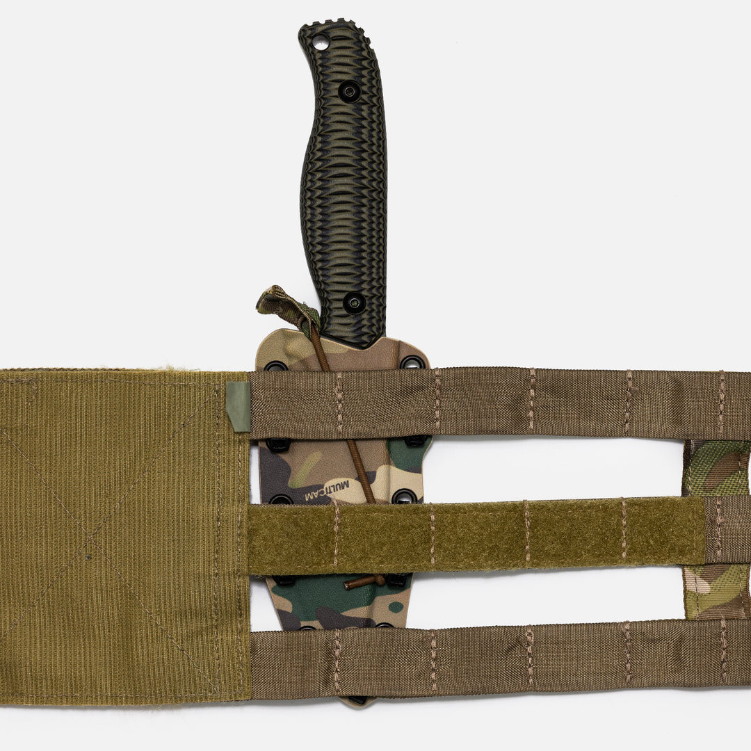 After dozens of sheath iterations and testing we have found the optimal balance of blade retention and pull strength to feel confident that our blade will not eject unintentionally. Our sheath is built to grab the blade's guard, leaving the entire handle unobstructed for a full grip during sheathing and unsheathing. For added security, especially during high-risk operations, we’ve integrated a secondary bungee retention system and pull tab which comes standard on our Blackbird Sheath to feel confident you won’t lose your blade.